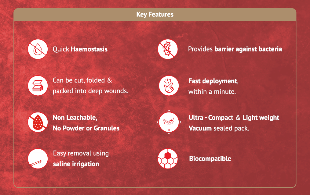 Axiostat Chitosan Haemostatic Gauze - Rolled L50 is a sterile, single-use, non-absorbable haemostatic dressing intended to be used for temporary control of bleeding wounds. Axiostat stops moderate to severe bleeding due to cuts, lacerations, venous or arterial bleeding.